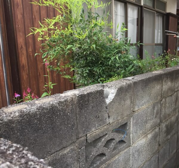 塀に亀裂が入って倒れそうになっている。事故が起きてはからでは遅いので