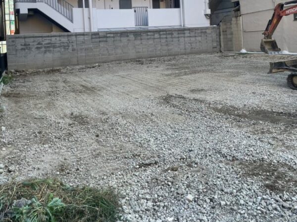 重機で土を掘り返して土を入れて整地をしてから再生砕石を敷詰めました。