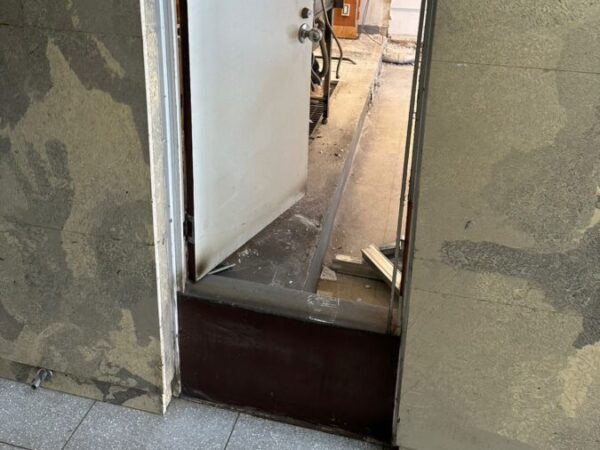 ビル廊下と繋がるドアも撤去処分だった為、ドア跡を化粧板で塞ぎ無事工事完了となりました。