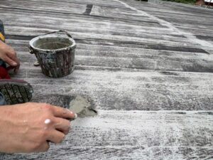 作業は屋根本棟の漆喰補修と丸瓦の取り付けコーキング作業をしました。