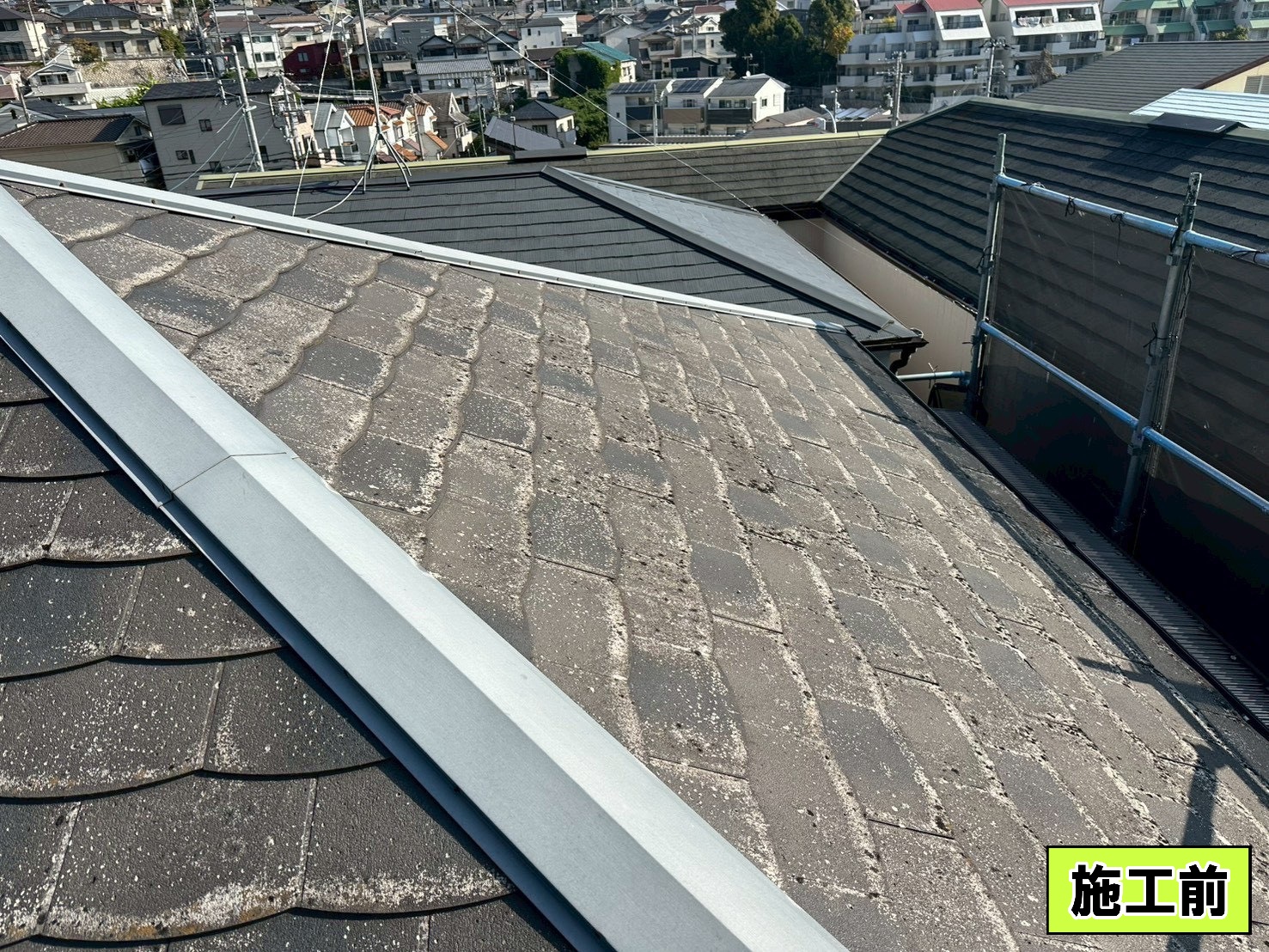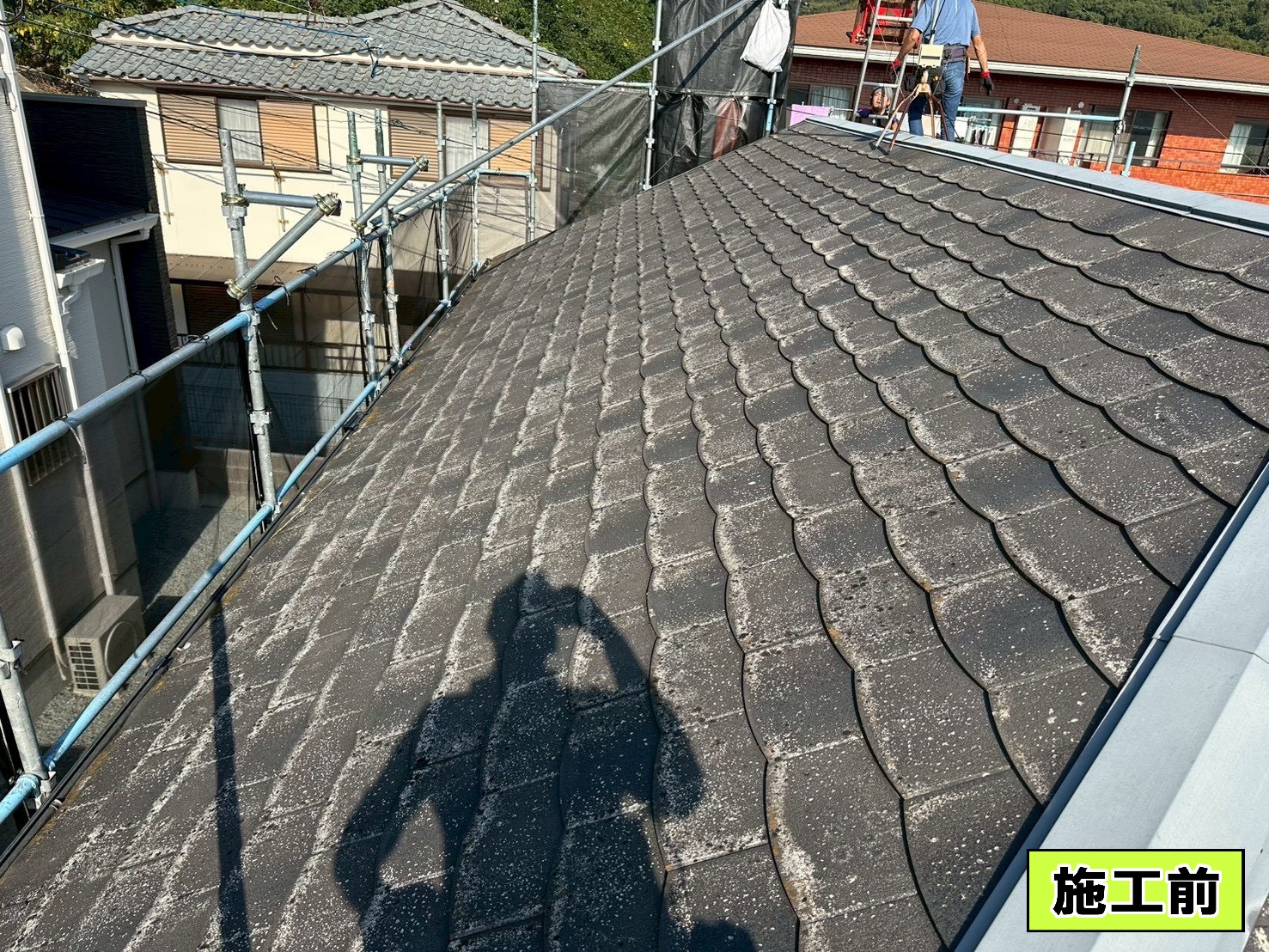 屋根に道具や材料を持って行くのに足場が必要なので、足場がないと工事は始まらないです!