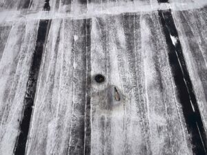 谷部分の所に穴が空いておりそこから漏水していることを確認しました。