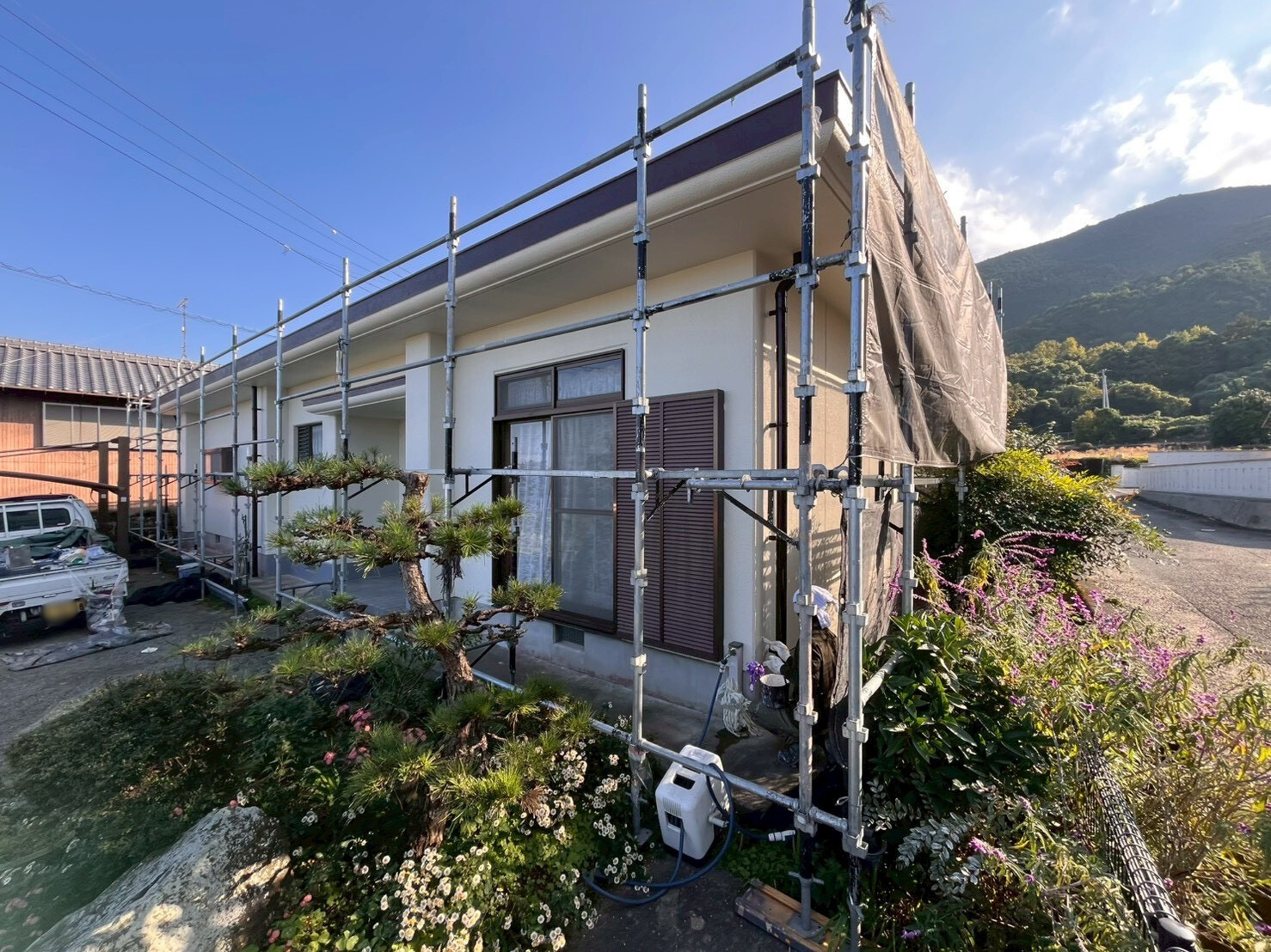 3階建の為足場が必要で足場を組み、費用が出来るだけ掛からないない様に