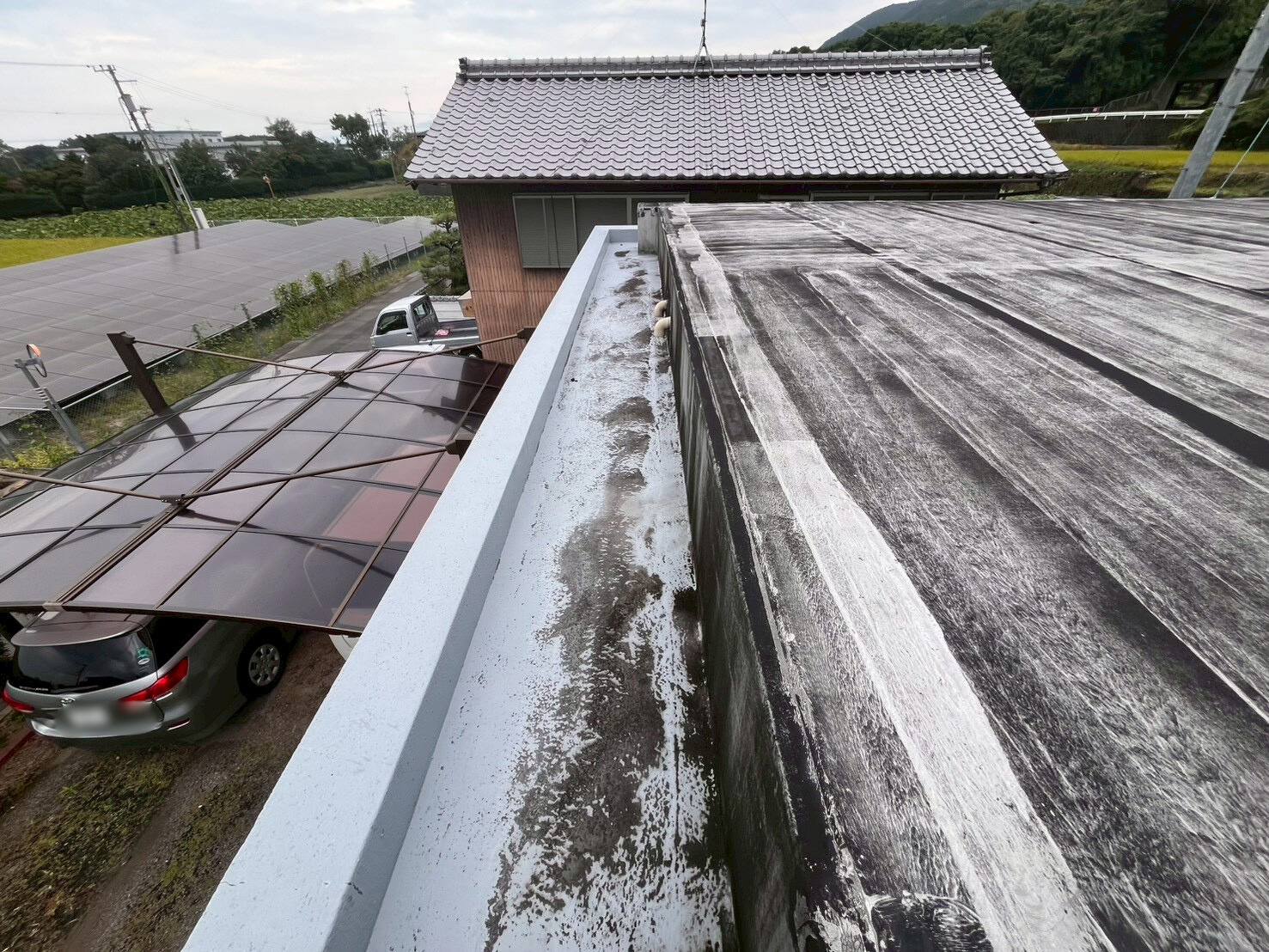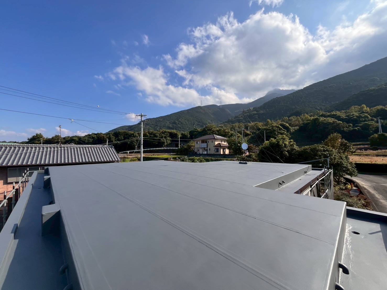 RC造の平屋の陸屋根で、屋根部分は加硫ゴムシートとウレタン防水による防水仕上げでした。