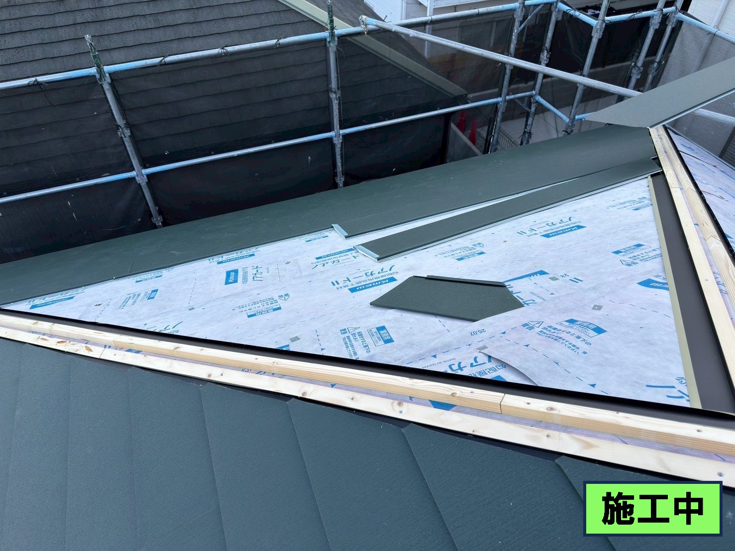 下地の調整が終わり先に唐草の取り付けて、いよいよルーフィングを敷いて行きます!