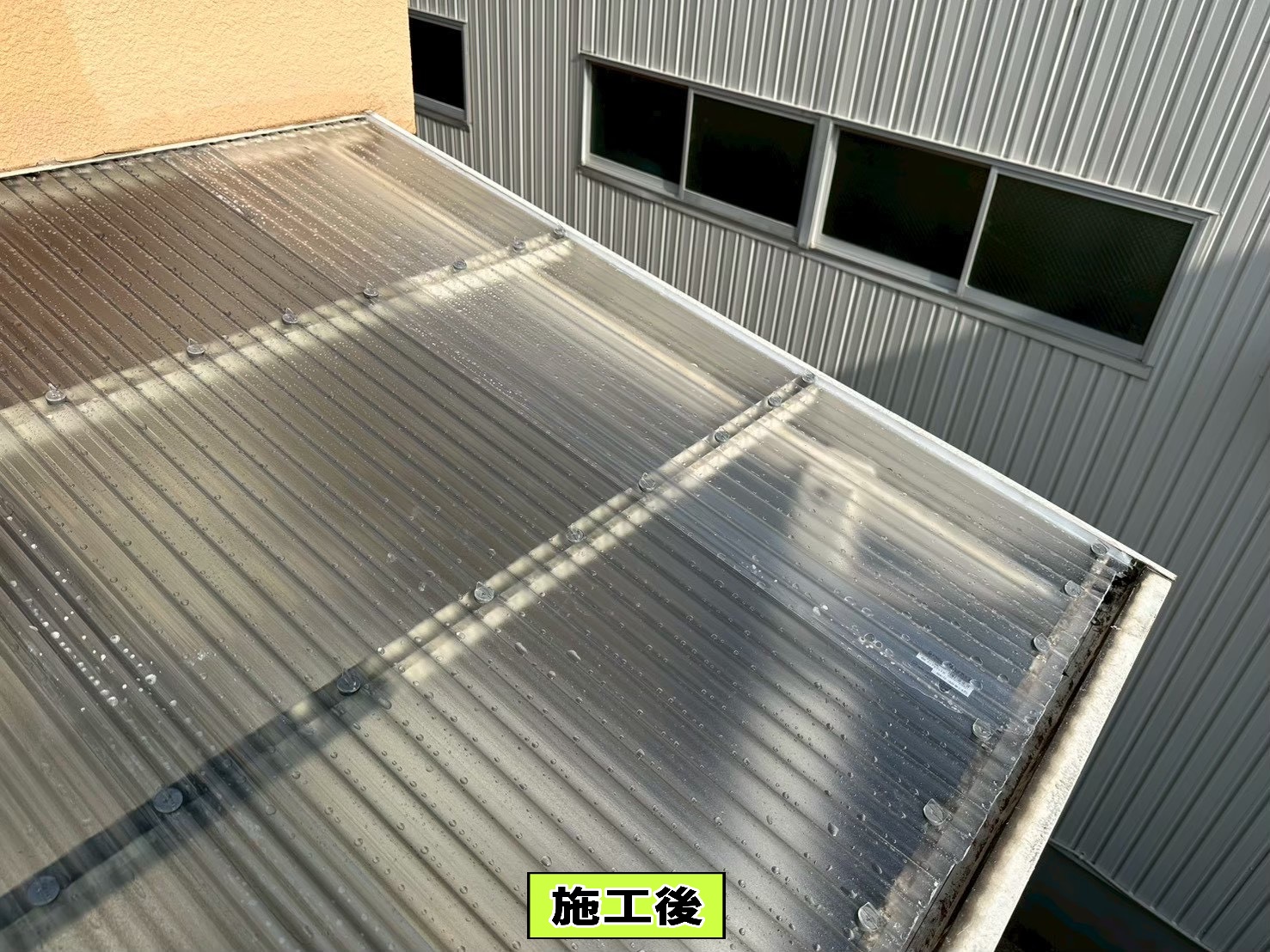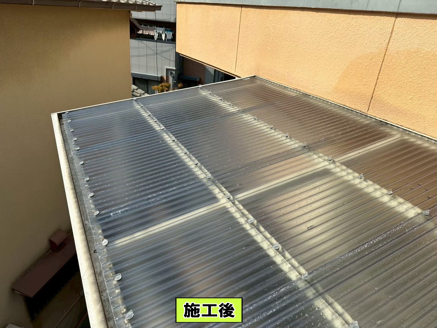 テラス屋根の清掃でお客様よりご依頼があったのですが、ついでに波板も見て欲しいとご要望があり、自宅購入から一度も交換した事がなかったとの事で、かなり硬化してたので交換をご提案して、波板交換工事と清掃のご契約を頂きました。