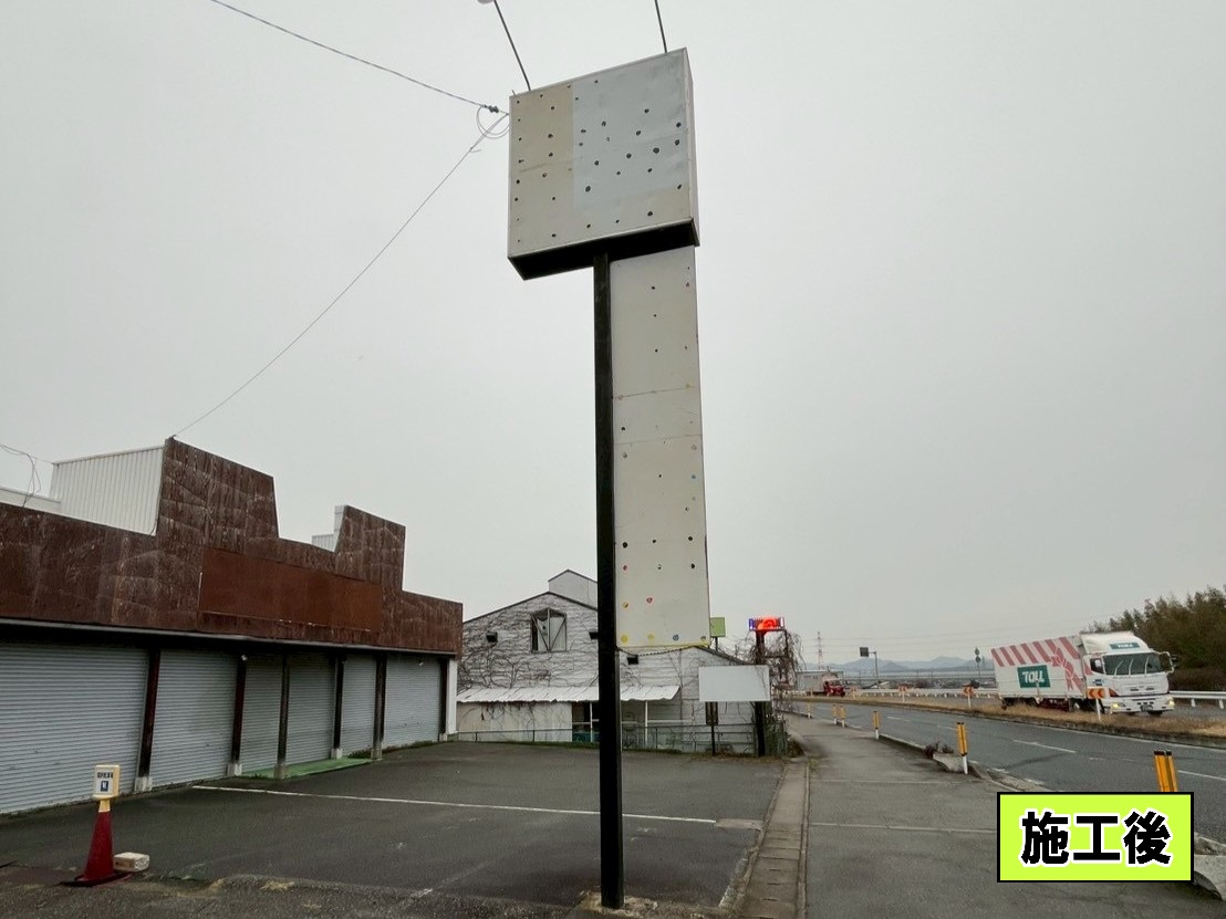 看板のシート剥がしは足場を組んで作業致しました。