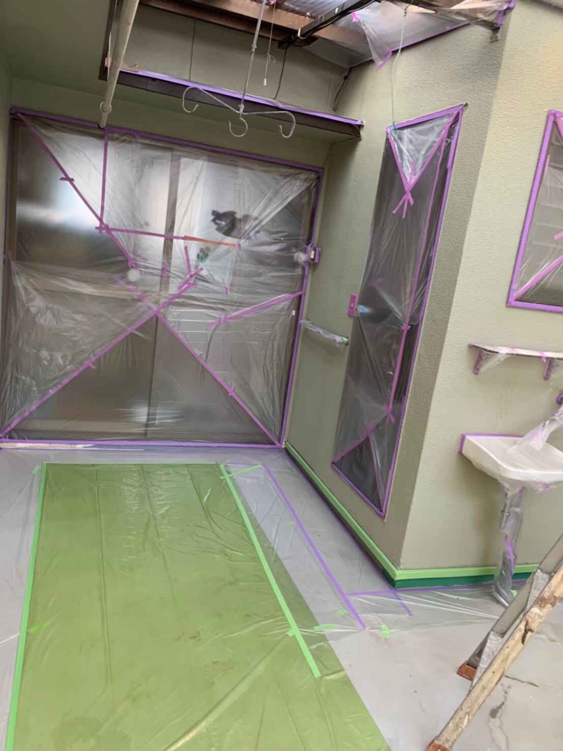 その後養生をし下塗りを塗って行き、フッ素専用中塗りで塗装後フッ素専用上塗りで塗装を行いました。