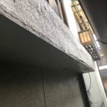 ヒビ部分に沿ってV型に溝を掘って、アクリルウレタンなど軽モルタルなどで補修を行いました。