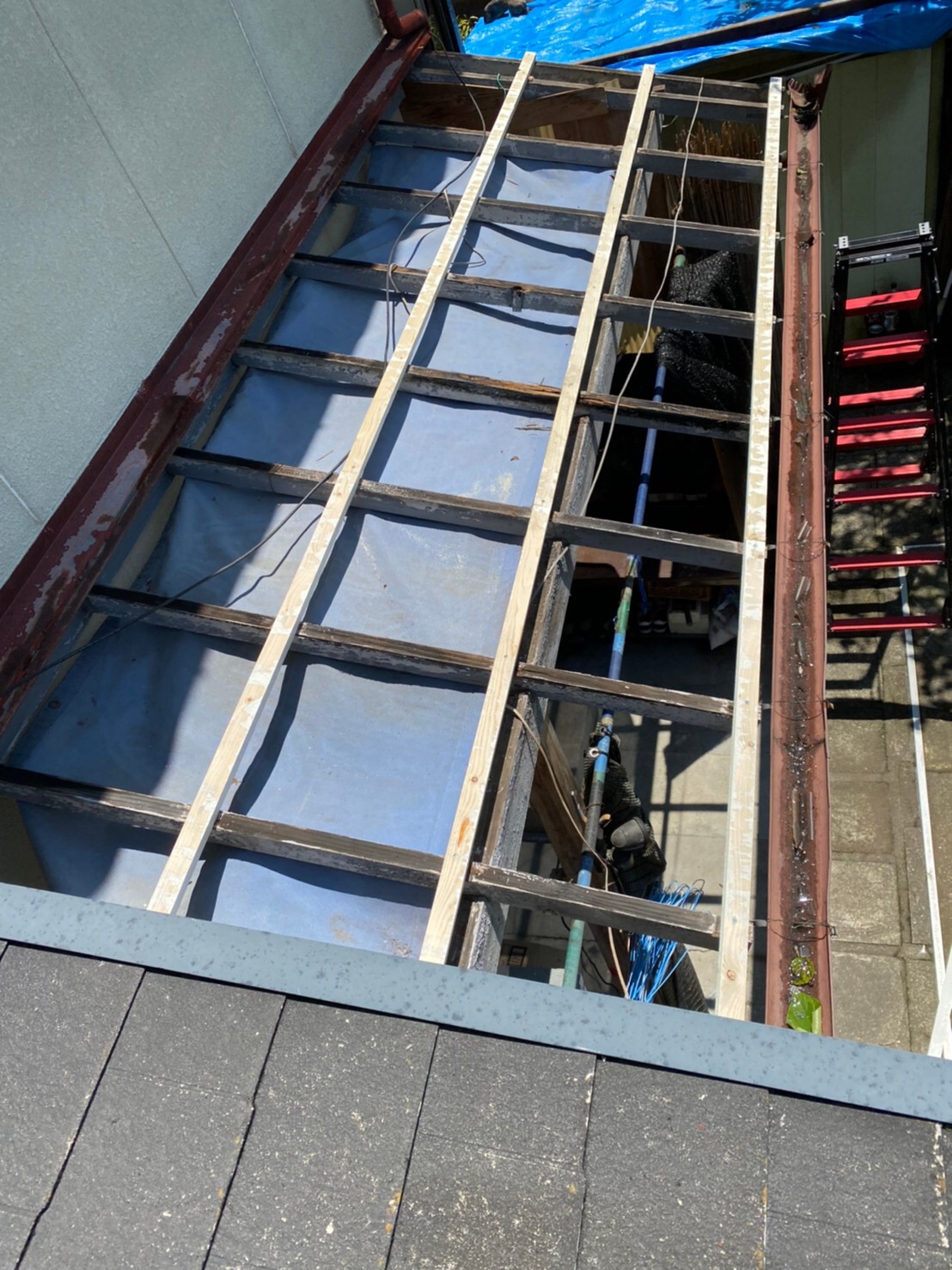 波板が劣化し割れて穴が空いているため交換して欲しいと依頼が来ました。