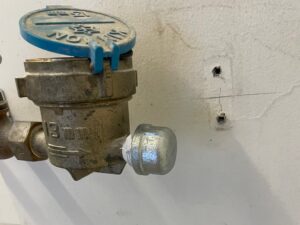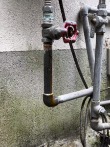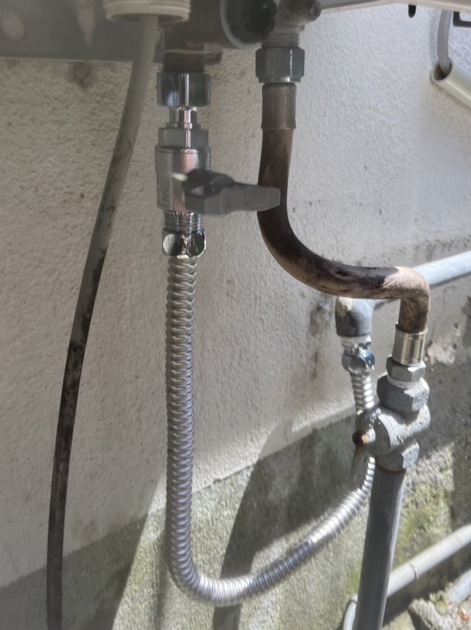 給水元栓の先に逆止弁付きのバルブを取り付け、