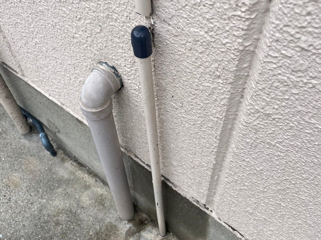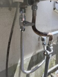 漏れていたエルボと塩ビ管をフレキ管に交換し、