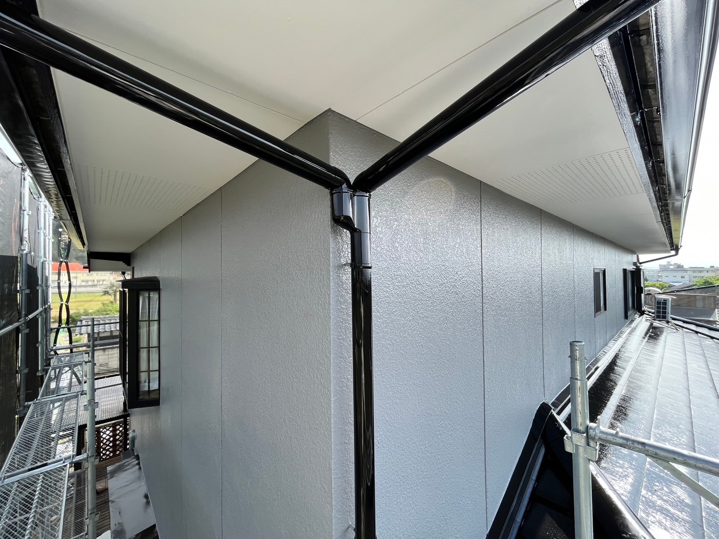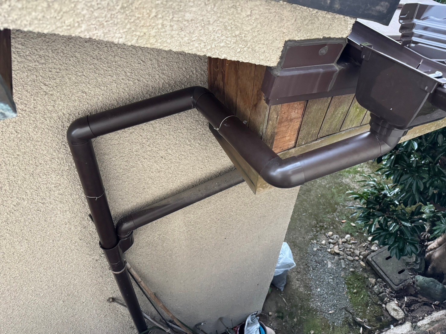 銅の樋は高いので穴が空きにくいエンビの樋をおすすめ致しました。