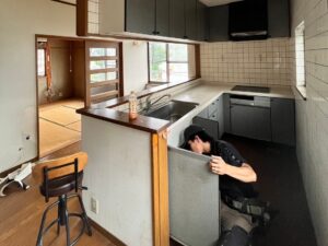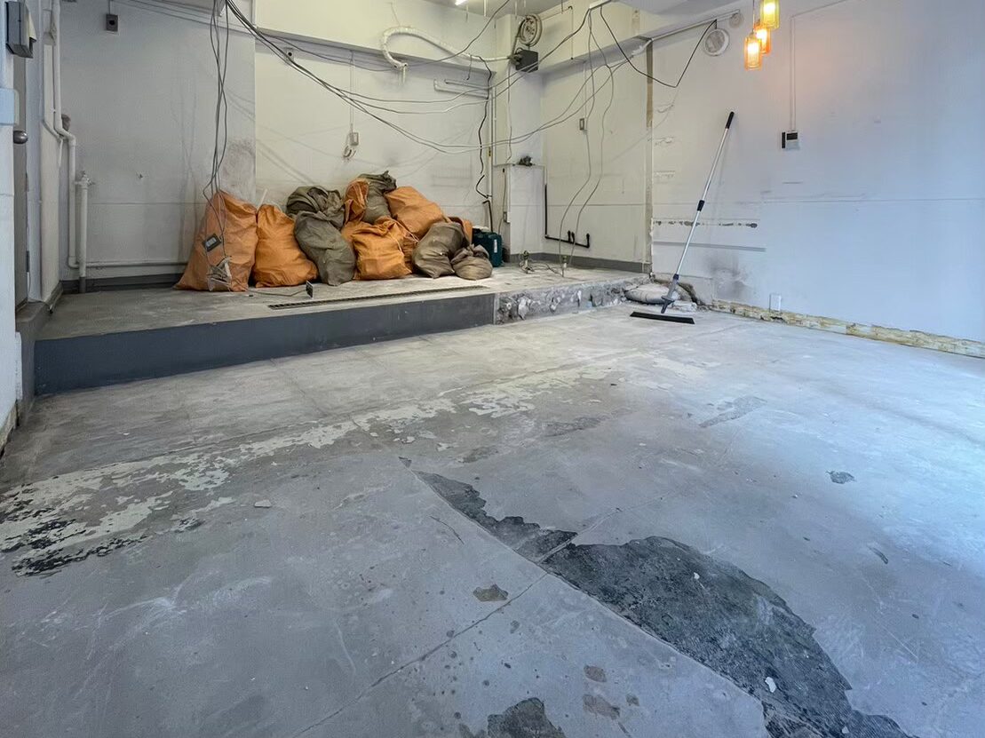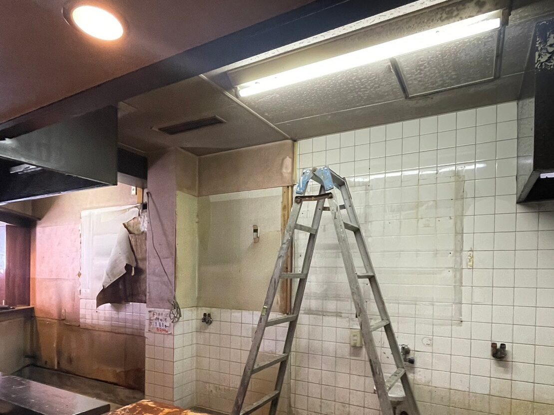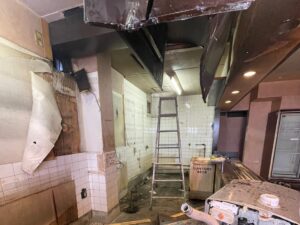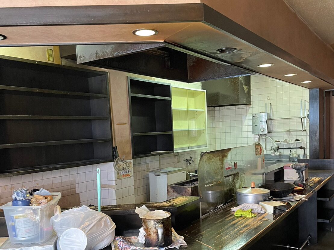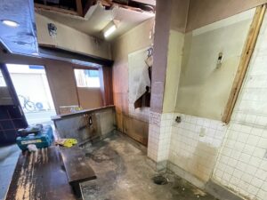 厨房什器撤去、間仕切撤去、カウンター等を全て取り外した後、