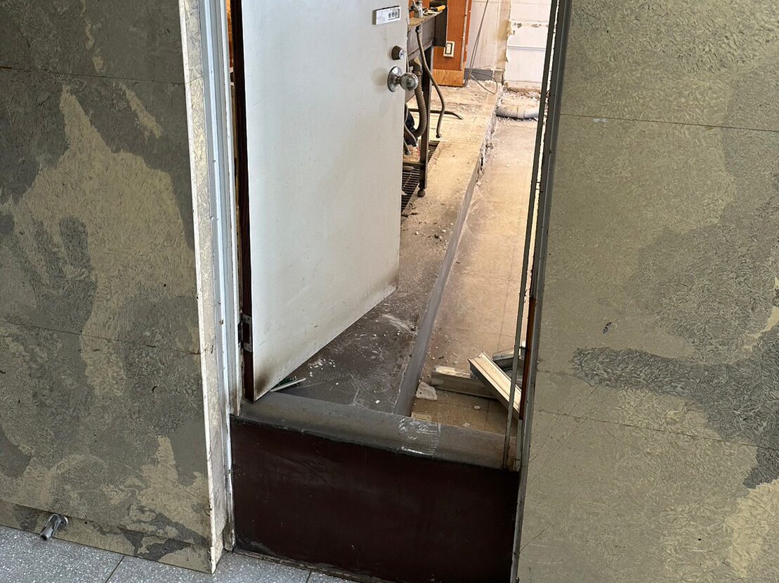 ビル廊下と繋がるドアも撤去処分だった為、
