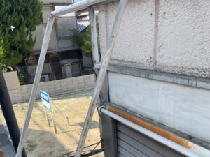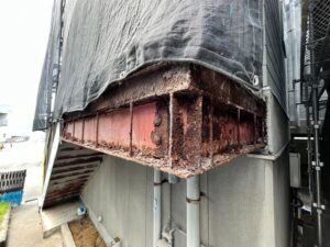 排水ドレーンが詰まって下地の鉄骨は腐敗しモルタルは爆裂していました。