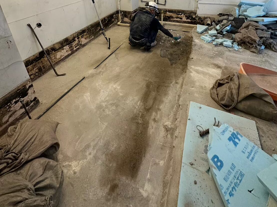 ガス配管等を傷つけないよう慎重に削り作業を行いました。