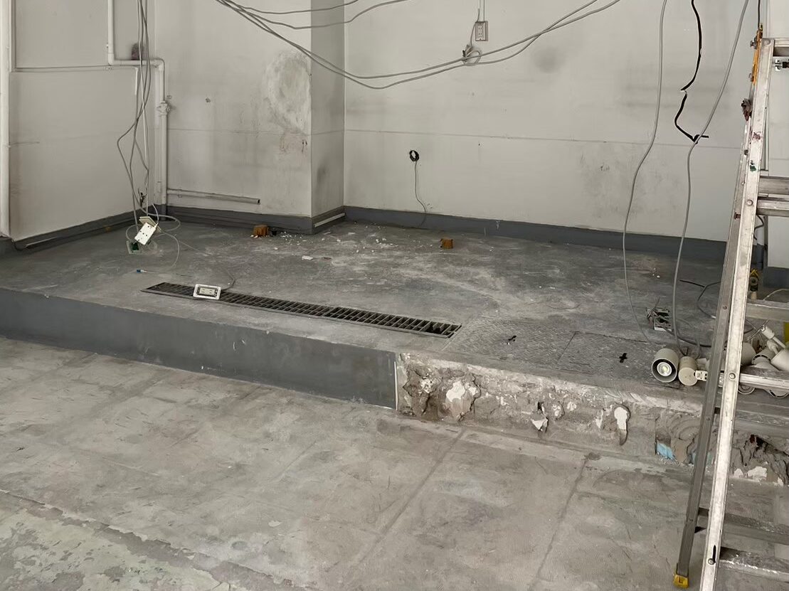 コンクリート土間の立ち上がりを削りました。