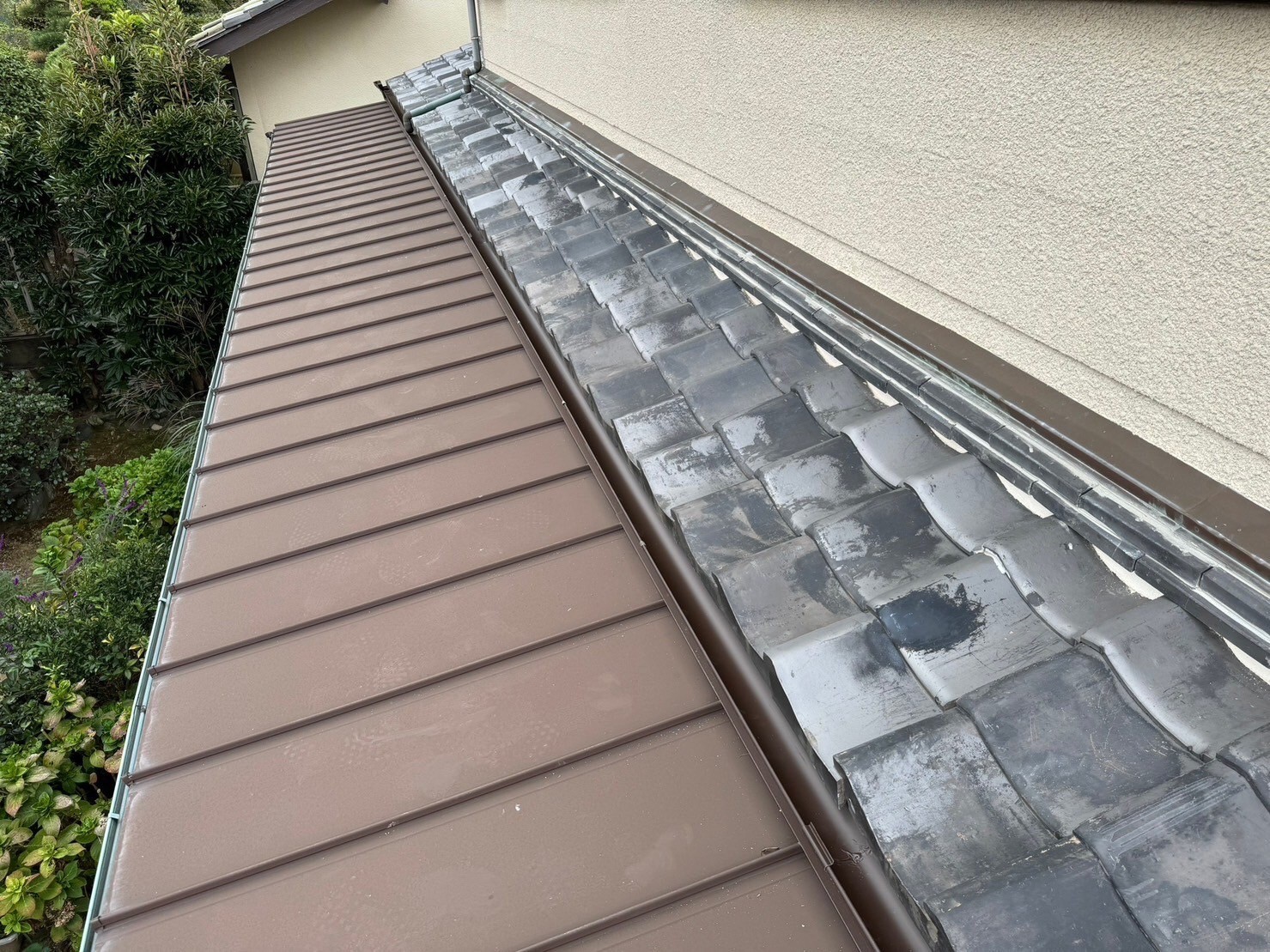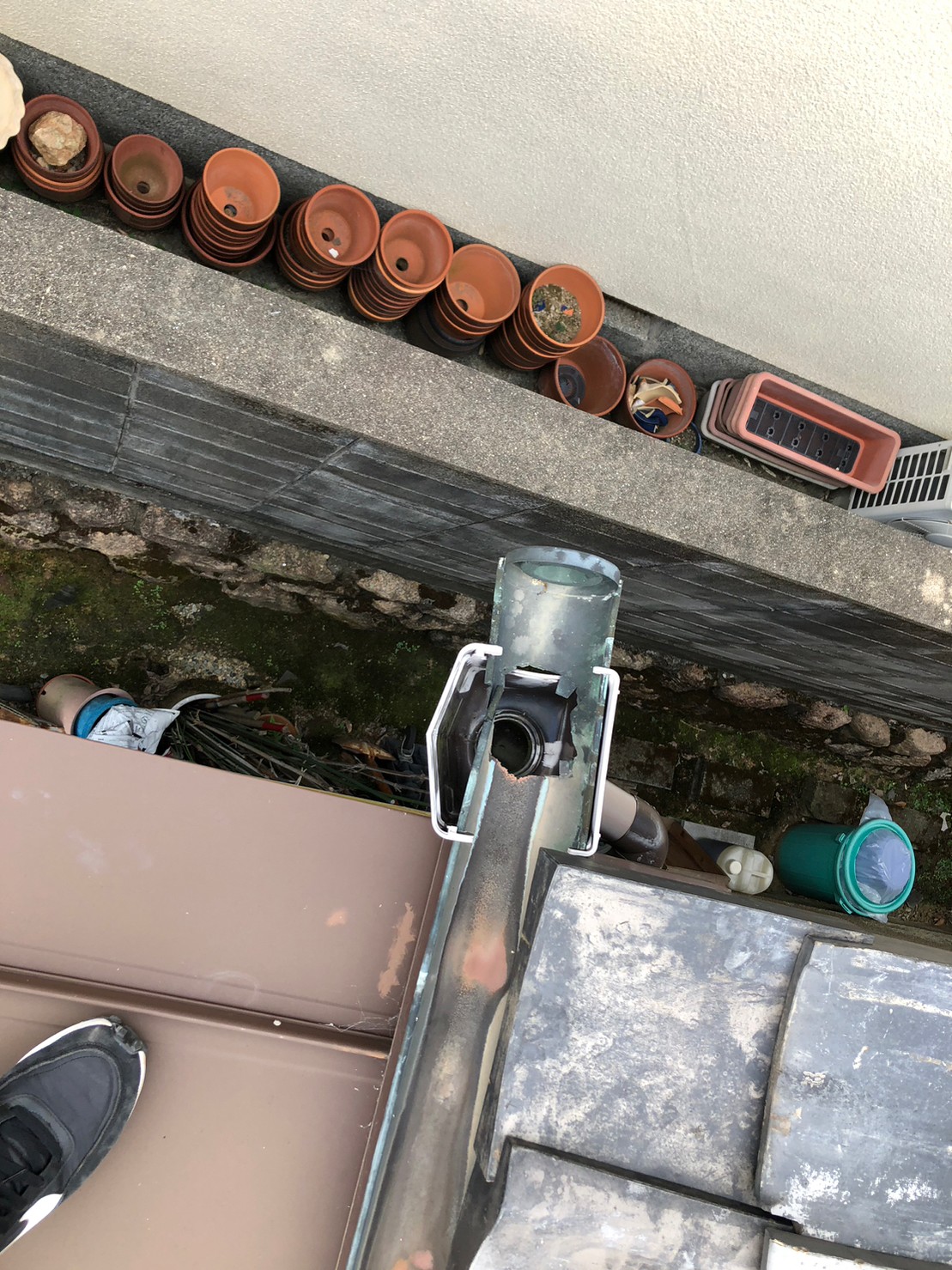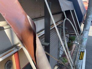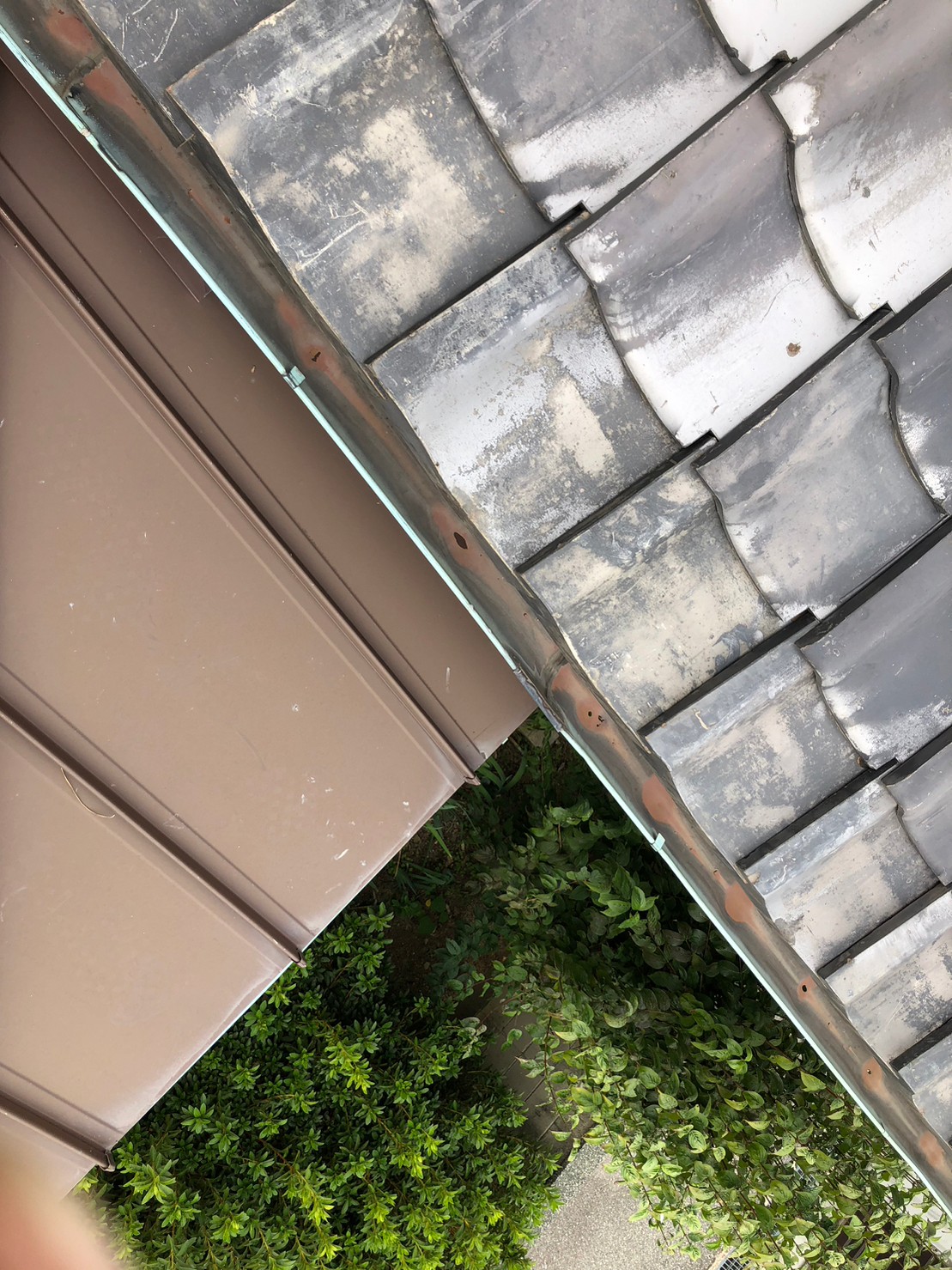 銅の樋で年数が経っており軒樋に穴が空いてしまい、