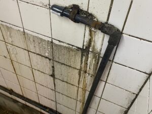 古くなった配管のエルボ(継ぎ目)から漏水していた為、