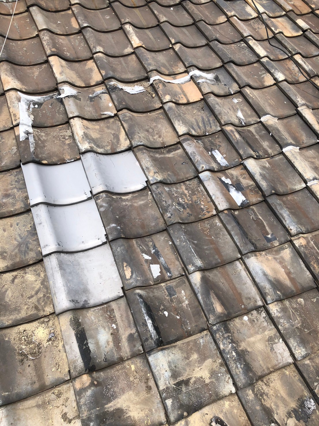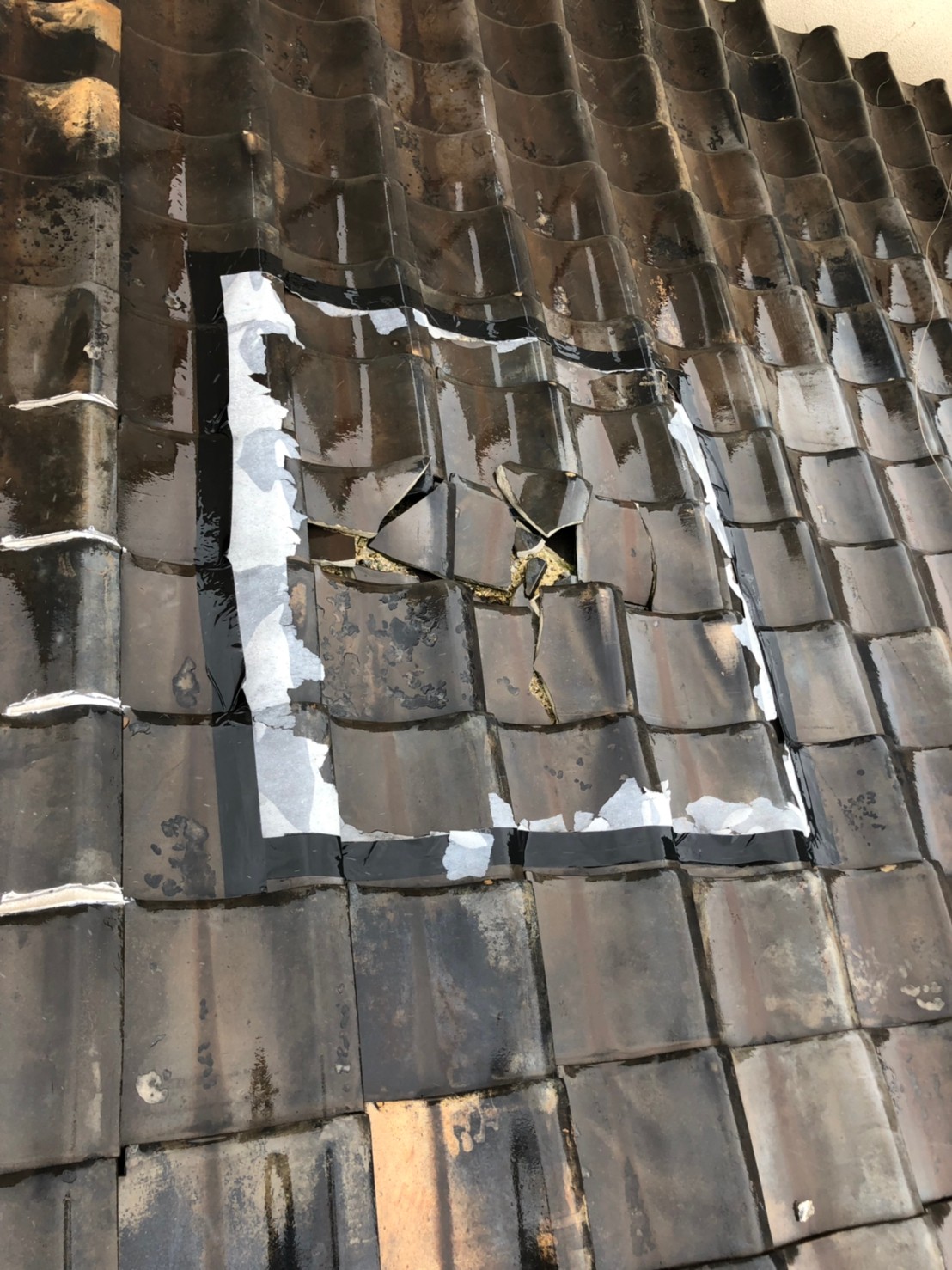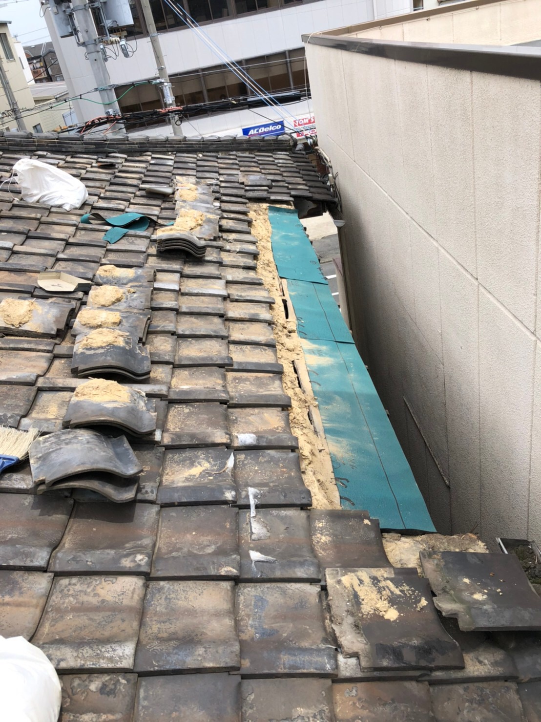 雨漏り部分の瓦をめくり土を取り防水シートを貼って、土の代わりにシルガードを乗せて瓦を葺きました。