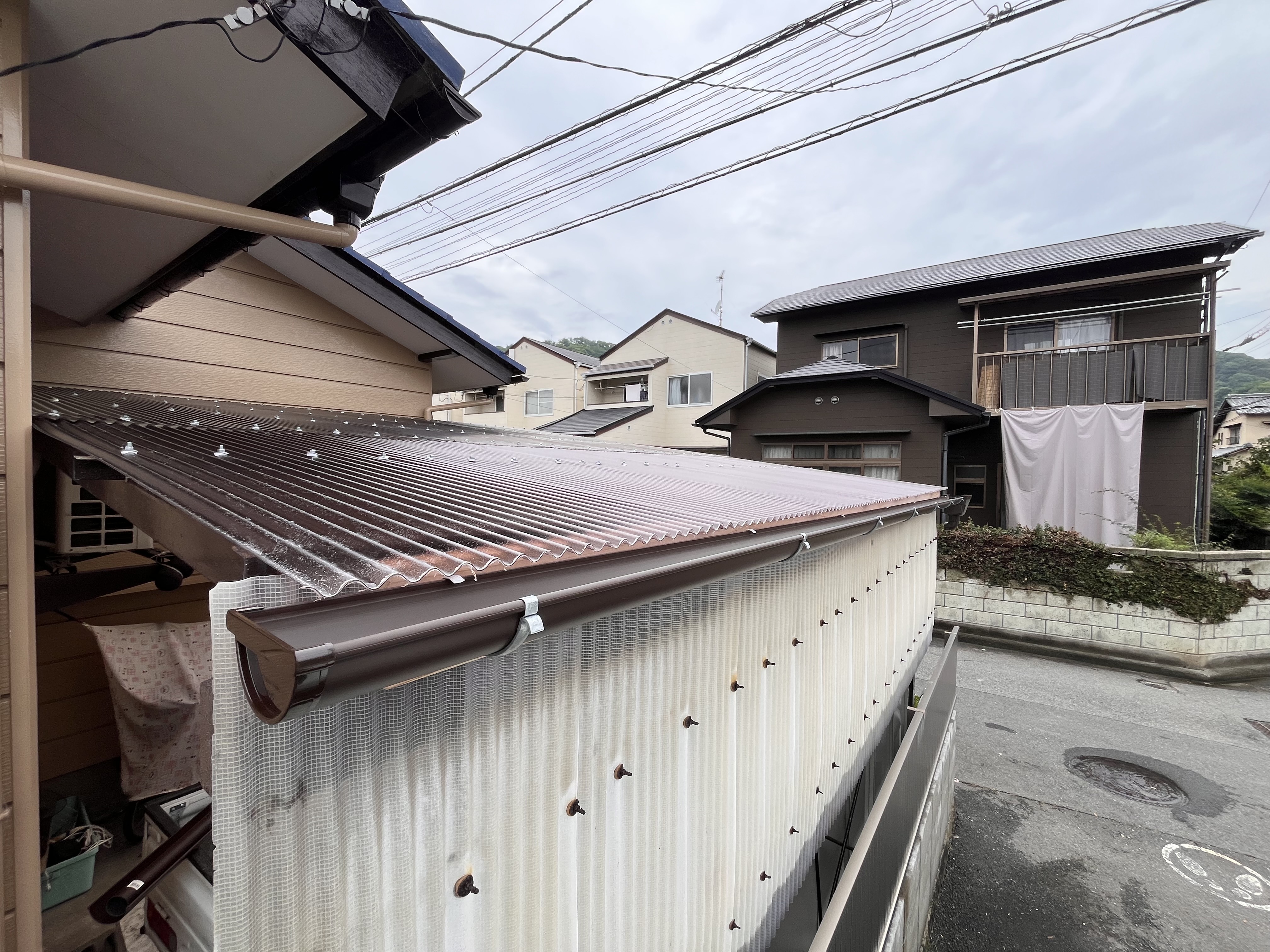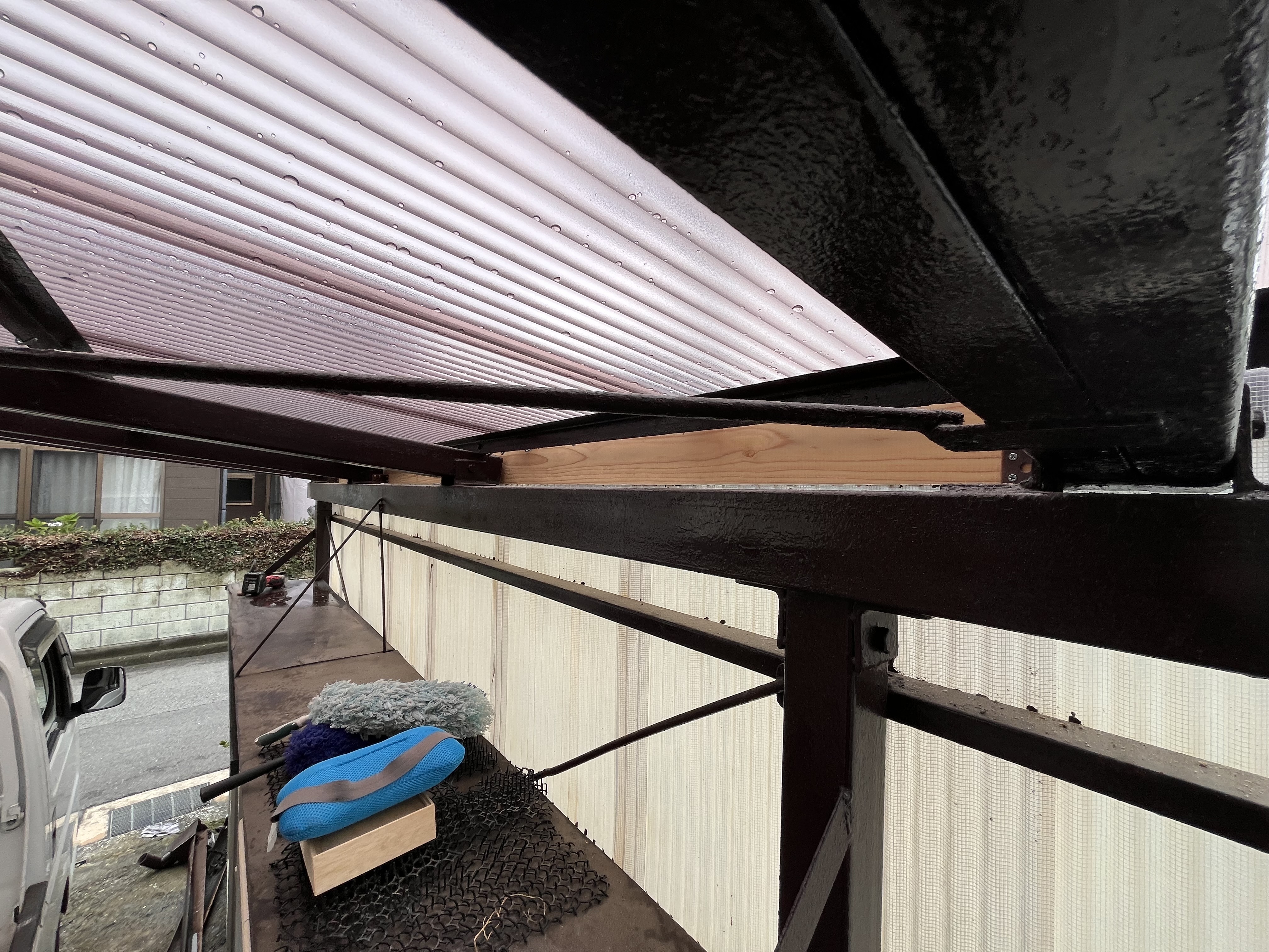 カーポートの屋根の波板と軒樋から雨漏りしていたので、波板一部と軒樋の交換をしました。