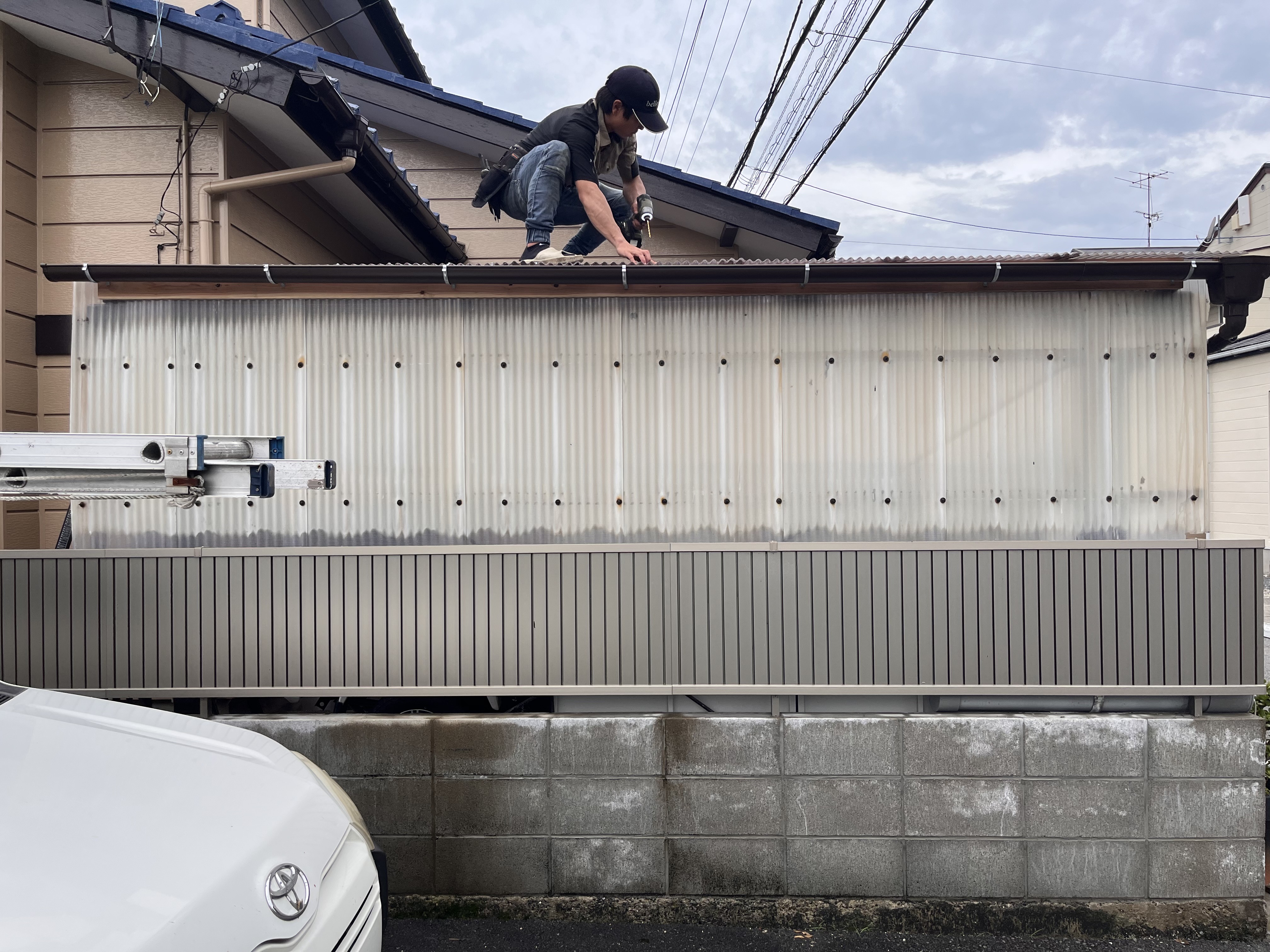カーポートの外壁は、波トタンと下地の胴縁・柱も撤去して、