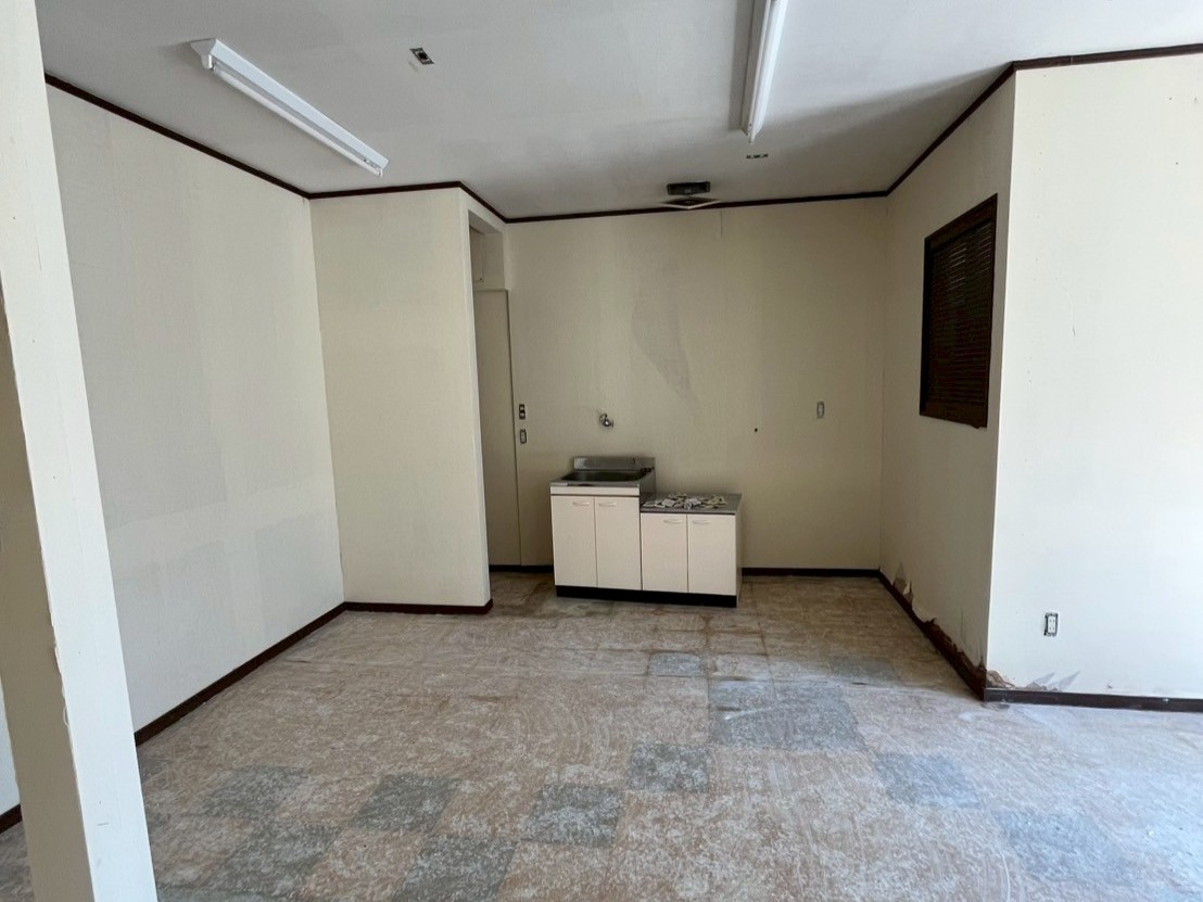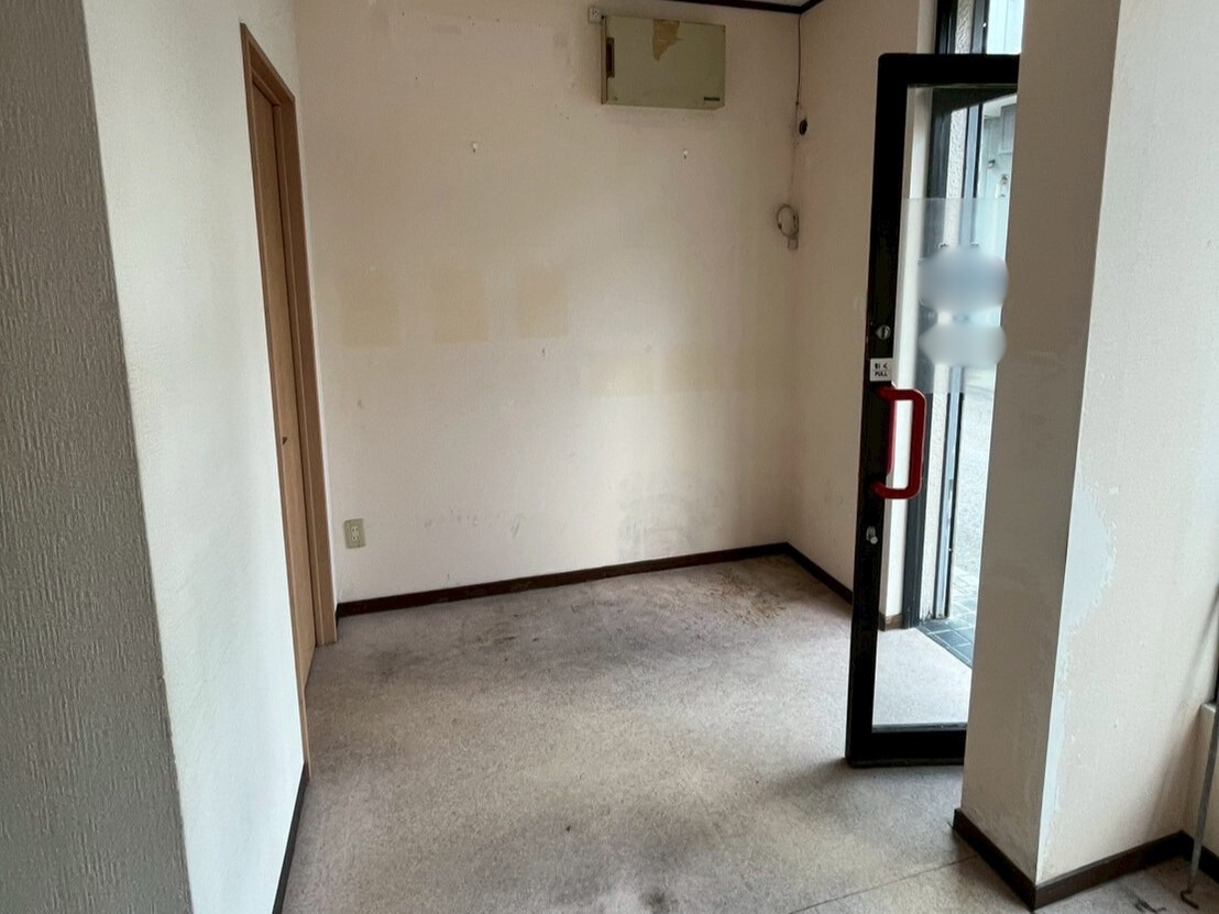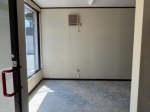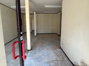 現状回復に伴い間仕切り解体、外の看板取り外し、クロス剥がし、CF剥がしの作業を行いました。