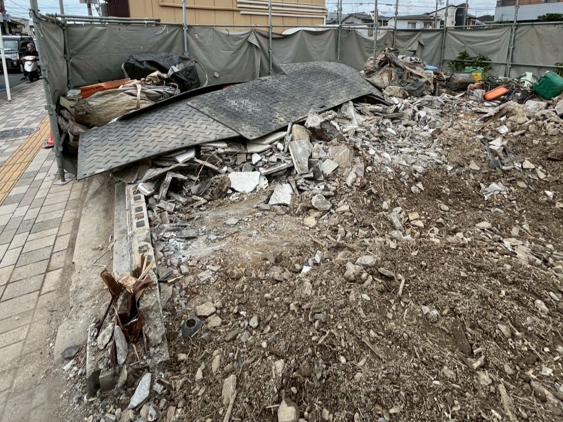 建物もなくなり残りは土間とコンクリートガラのみになった所で地中障害が発生しました。