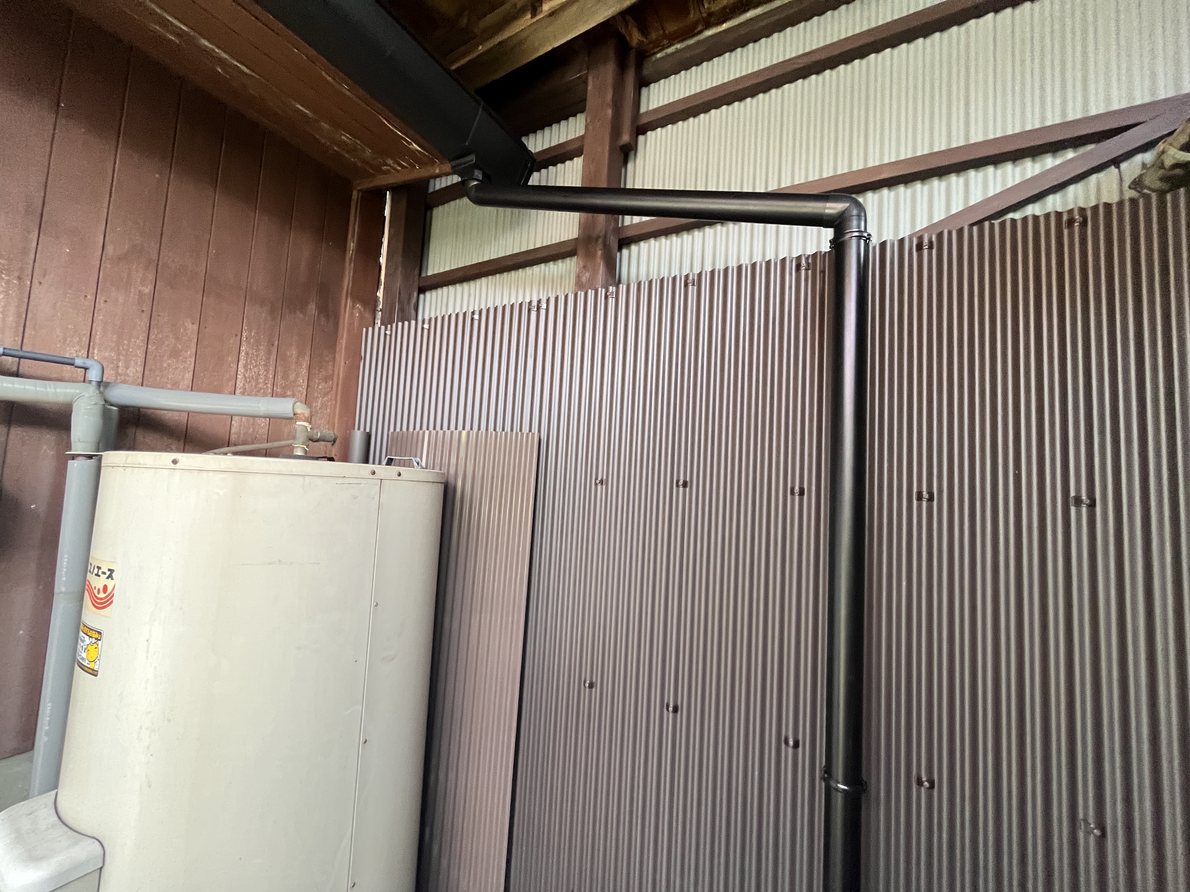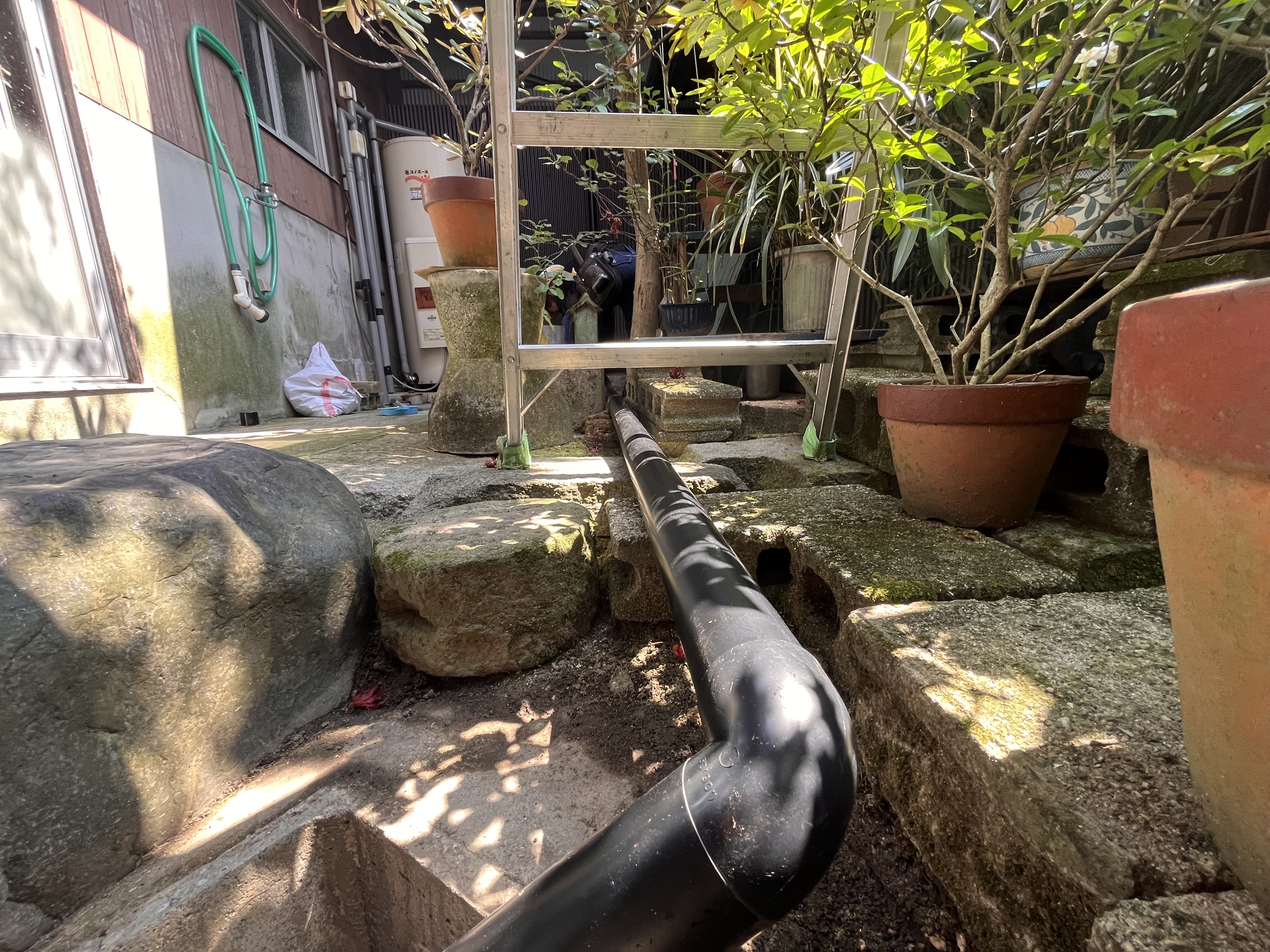 今回は地中の排水管を改修せず、竪樋を別の雨水枡に延長する方法で施工しました。