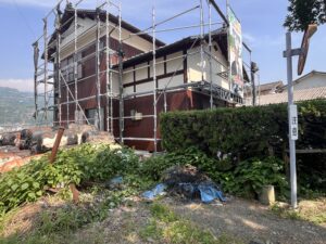 足場組みから組み始め、重機で正面から崩し二階、壁と順番に取毀していきました。