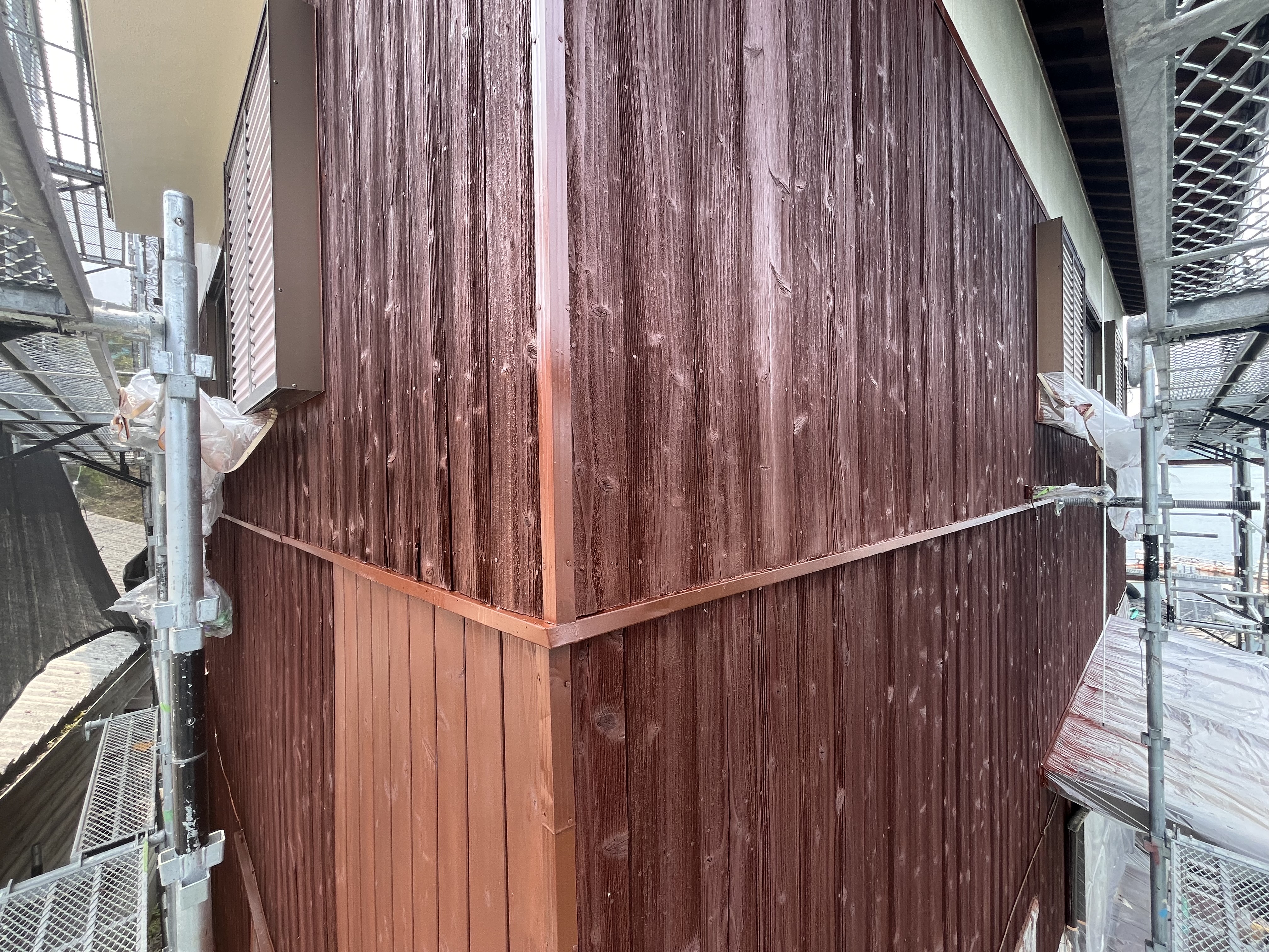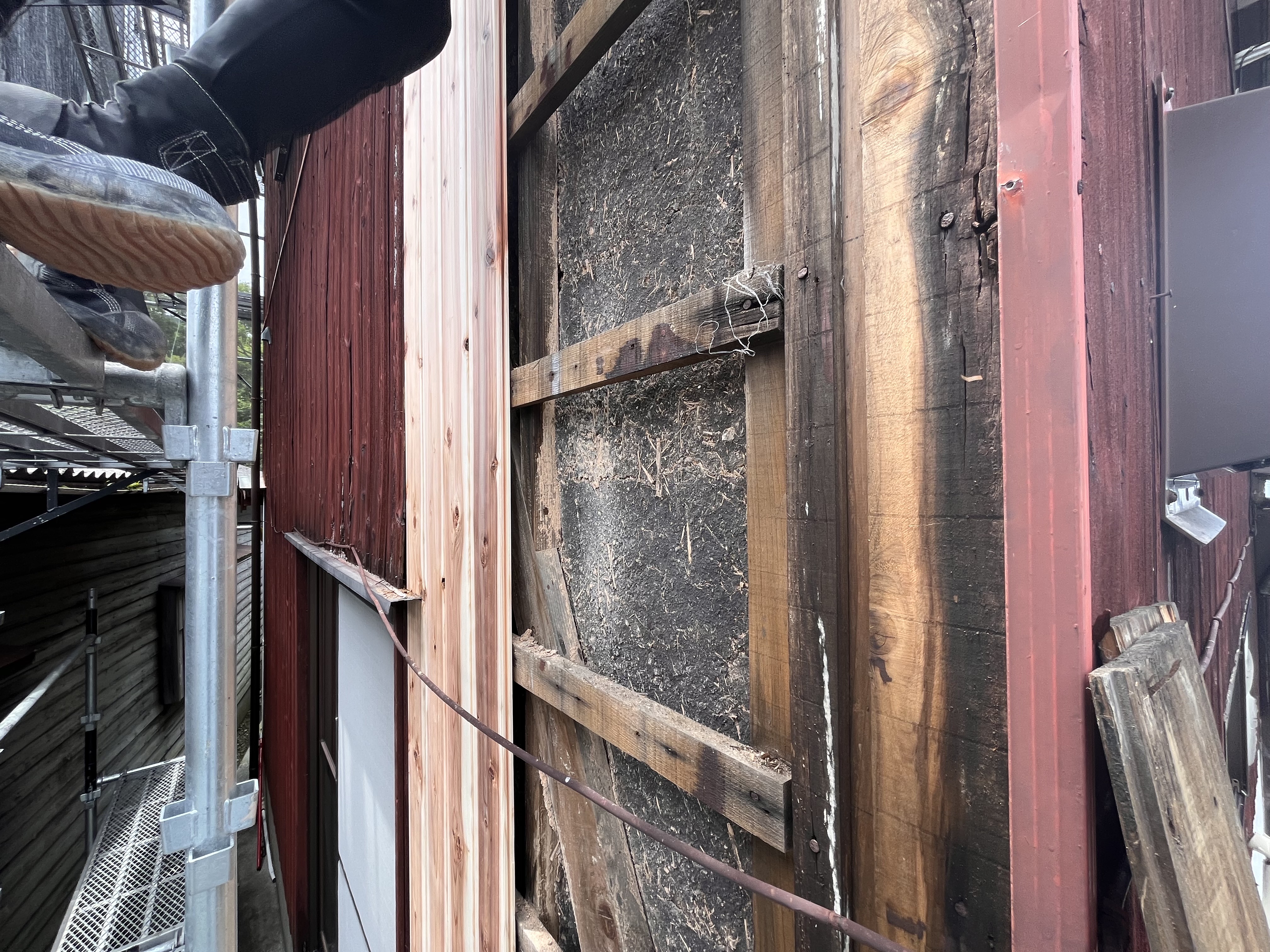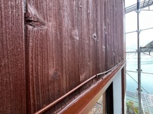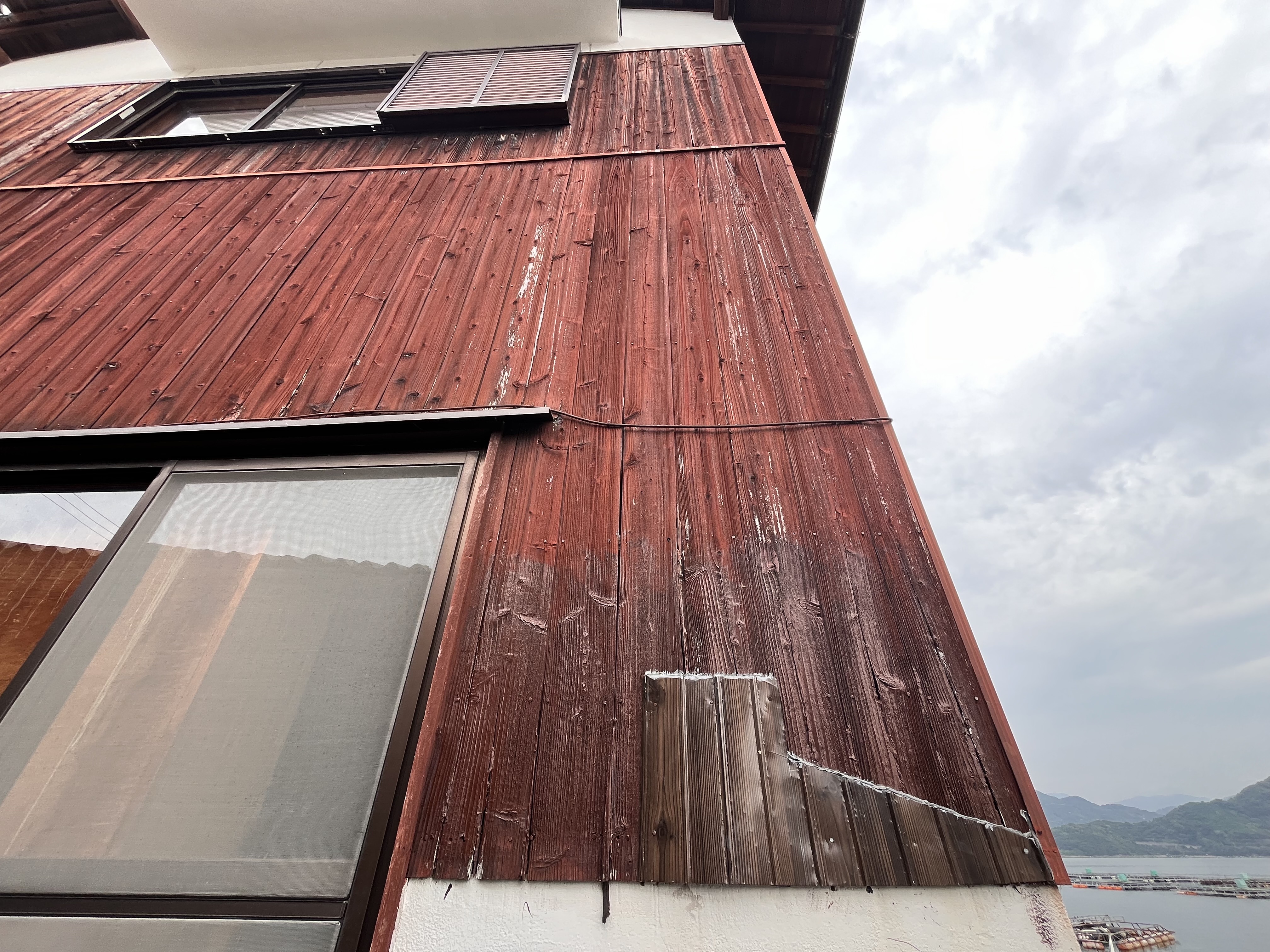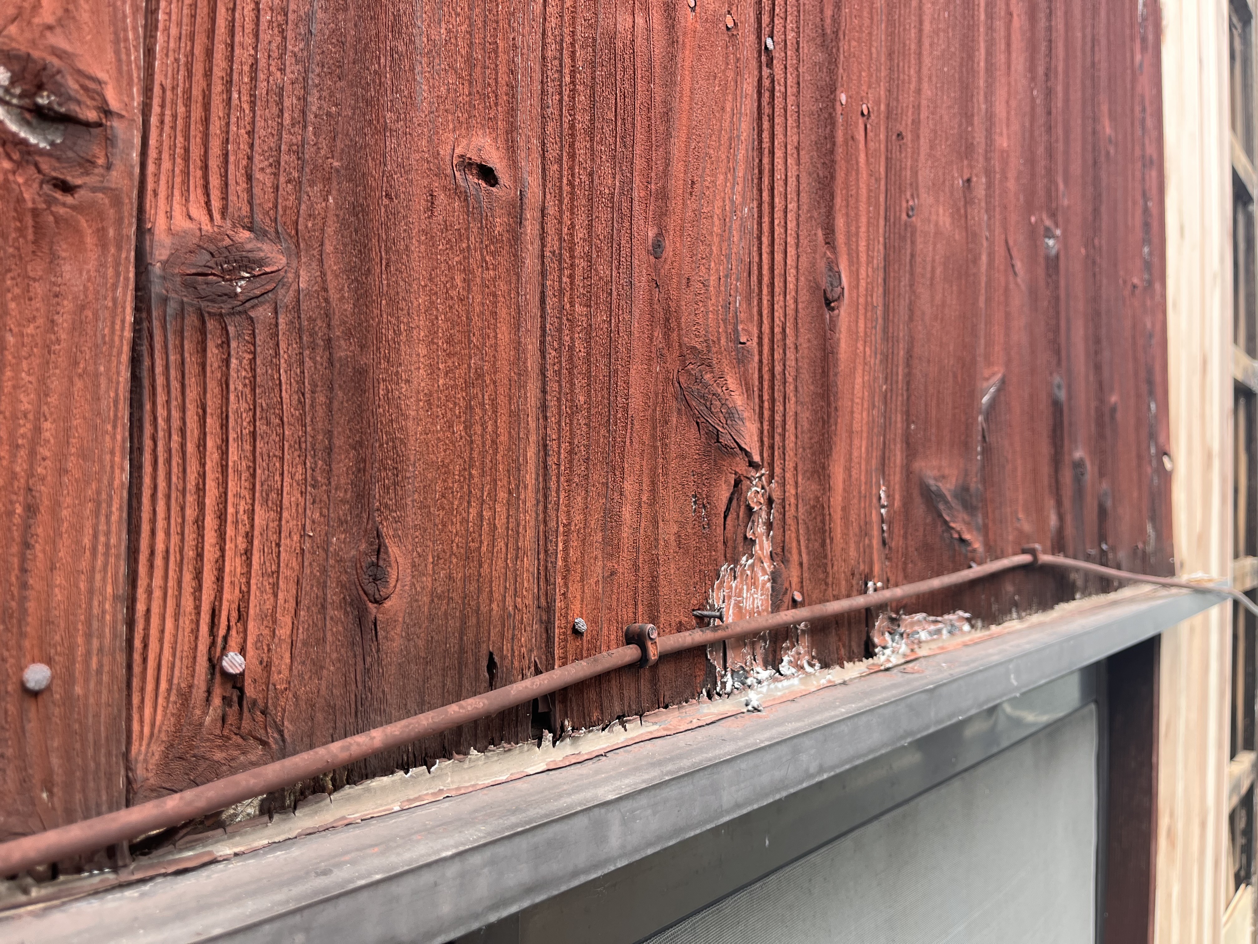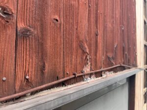 外壁の杉板の経年劣化で壁とサッシ周りから雨漏りしていました。