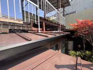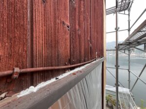 雨漏りしていた箇所は腐朽していた為張替えをし、釘が抜けていた箇所は釘を打ち直し、