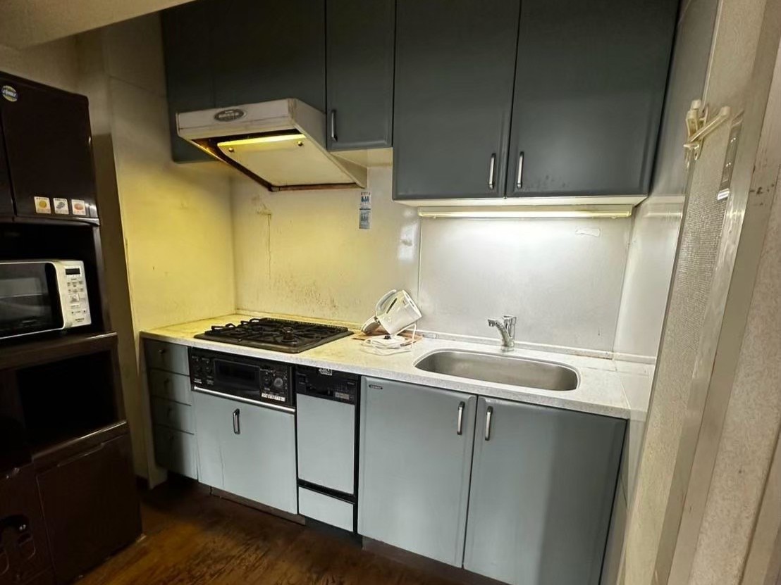 現状回復に伴い間仕切り解体、外の看板取り外し、クロス剥がし、CF剥がしの作業を行いました。