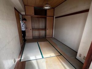 間仕切りは建具、ボード、下地、がありまして、順番に建具、ボード、下地と解体を進めました。