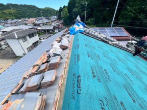 瓦の下に敷いてあるルーフィング(防水シート)と貫板を交換しました。