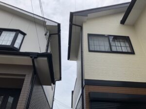 樋掃除は屋根に登って、高圧洗浄を行い完了しました。