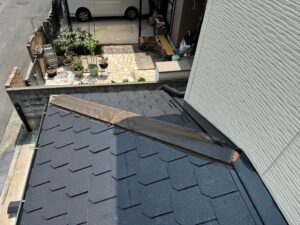 既存の屋根棟板金撤去処分をして新しい棟板金を取り付けて完了。