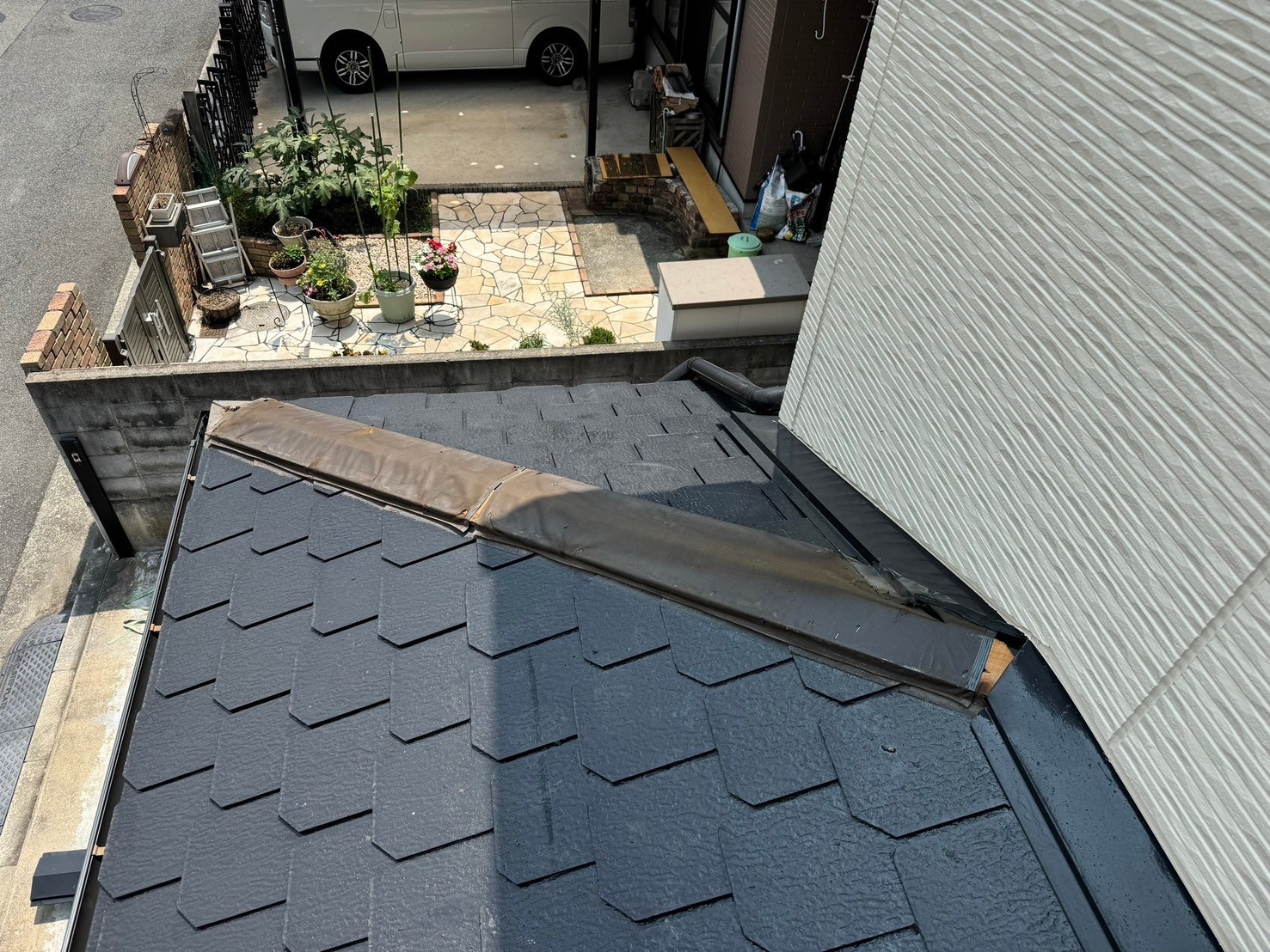 S型スレート屋根の雨漏り補修をしました。